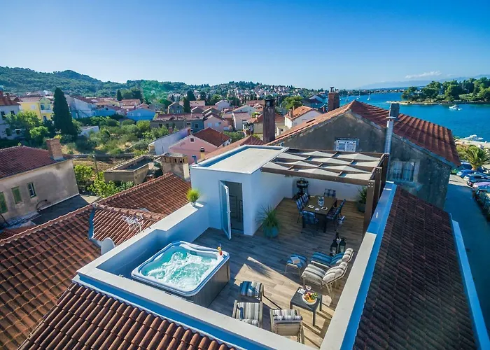 Die Unterkunft bietet eine voll ausgestattete Küche mit einem Wasserkocher, einem großen Kühlschrank und einem Herd an. Die Gäste dieses Apartments können den Komfort von Ausstattung zur Kaffee- & Teezubereitung genießen. Gerichte der europäischen Küche werden im Restaurant Konoba Roko serviert, das sich ein paar Minuten Fußweg entfernt von diesem Apartment befindet. Die Bushaltestelle Preko Centar ist in 10 Minuten zu Fuß erreichbar. Gönnen Sie sich eine Ruheinsel im Alltag und lassen Sie sich in einem Swimmingpool und einem Tauchbecken verwöhnen. Es gibt ein Tauchbecken und einen Jacuzzi zur Entspannung nach einem anstrengenden Tag. Ein Wellnessbereich sorgen für den größtmöglichen Komfort der Gäste.